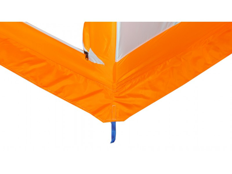 - Закрепить растяжками на льду и присыпать снегом пороги тента. Застежка-молния должна закрываться и открываться без усилий. Если этого сделать не удаётся, то необходимо: - установить укрытие на ровной поверхности; - расправить тент на каркасе; - отрегулировать натяжение тента (регулируется нижними вязками в местах крепления тента к каркасу по всему периметру).