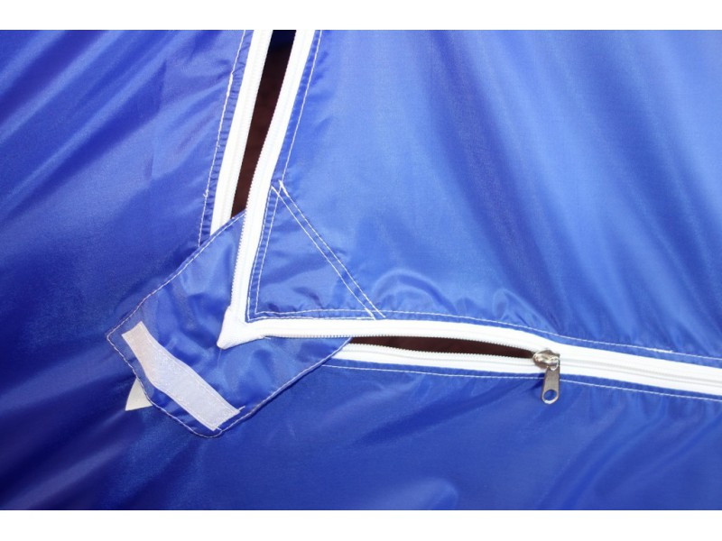 Инструкция по установке зимней палатки "Пингвин 2" с дышащим верхом (1-сл.):1. Вынуть зимнюю палатку "Пингвин 2 с дышащим верхом (1-сл.)" из чехла, откинуть нижние спицы палатки и расстегнуть застежку-молнию.