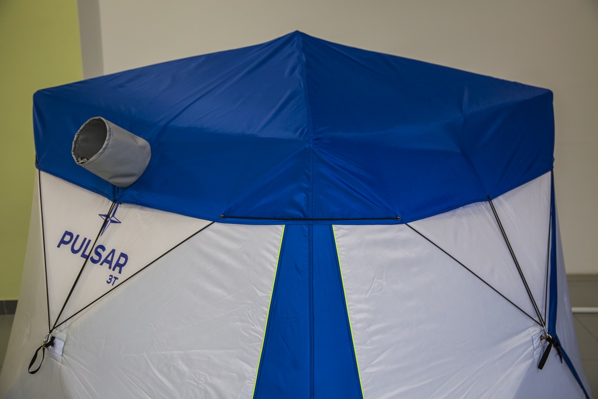 Антидождевая накидка для палатки Pulsar 4Т с огнестойким рукавом изготовлена из Оксфорда 240D 3000 PU. Швы проклеены. Крепится накидка к палатке при помощи веревок с карабинами, на всех накидках присутствуют вентиляционные рукава. Данная накидка имеет огнестойкий рукав. Компактно складывается для удобства транспортировки.