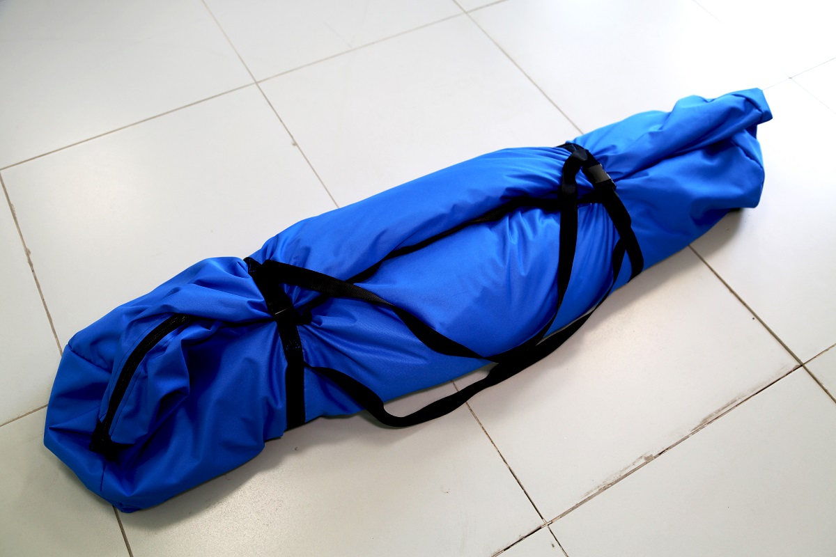 - Удобный и надежный чехол для транспортировки палатки, имеющий молнию и ремни-утяжки, позволяющие компактно сжать упакованную палатку.