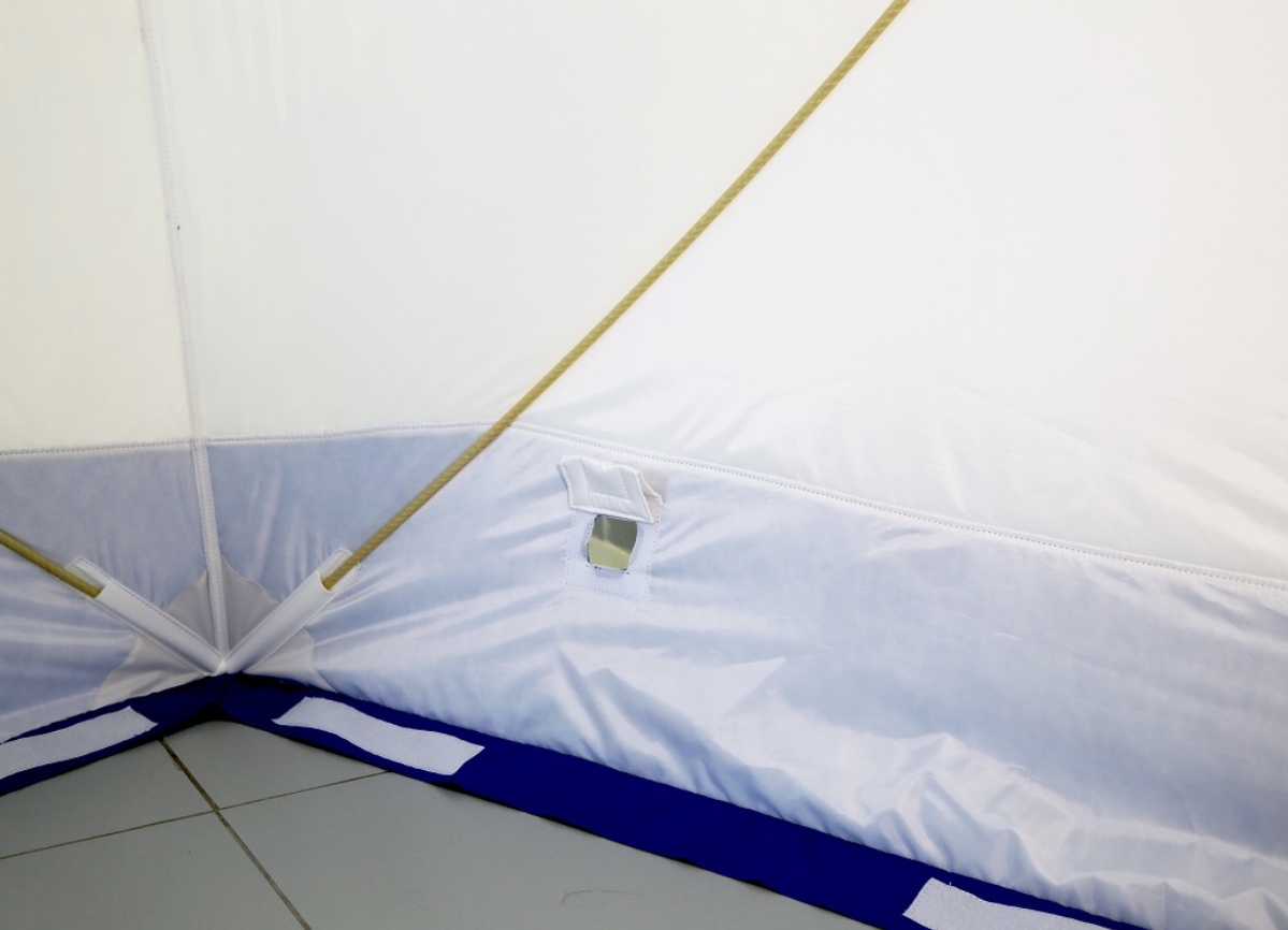 - Удобная и надежная система крепления утепленного пола к палатке;