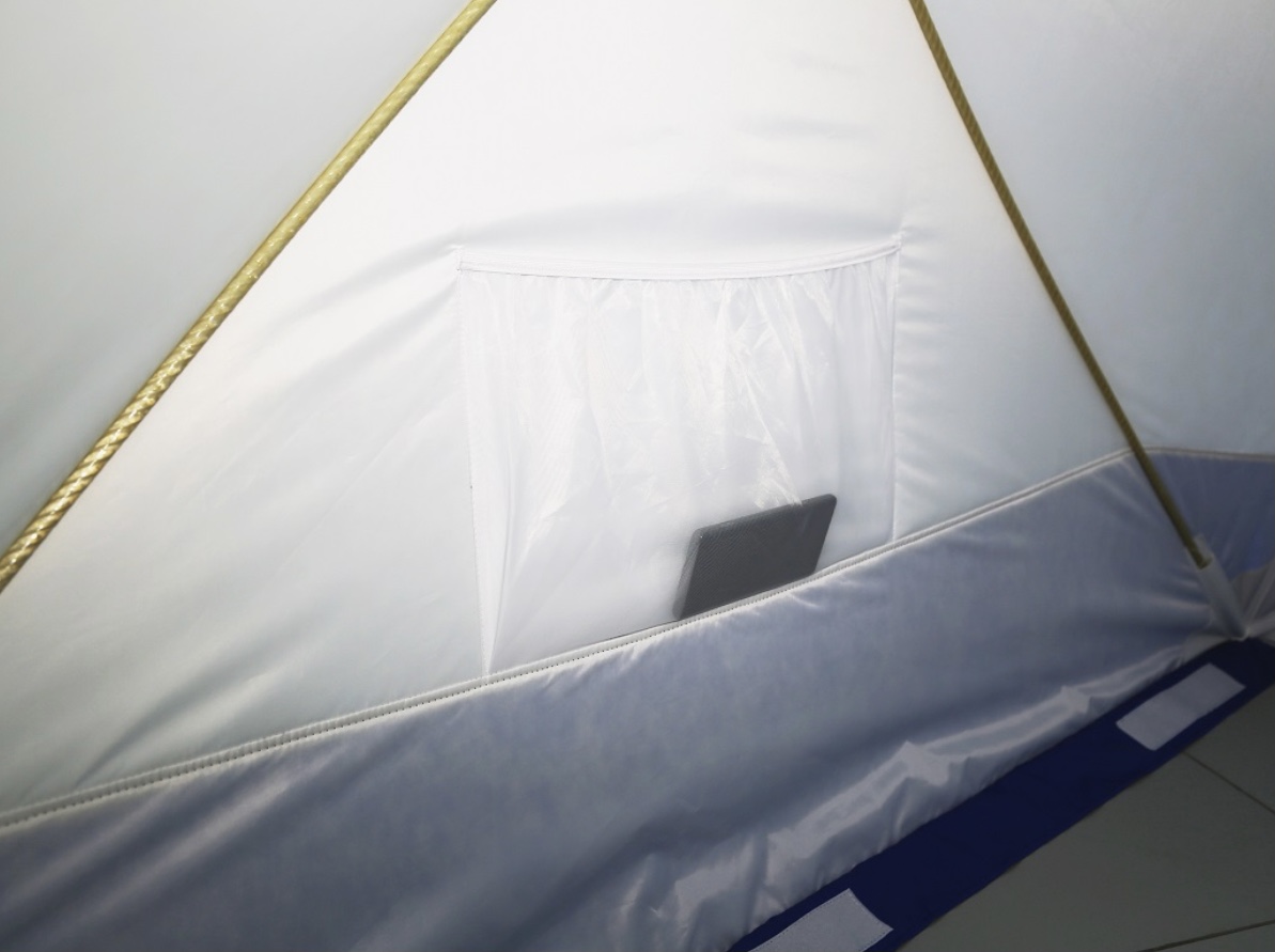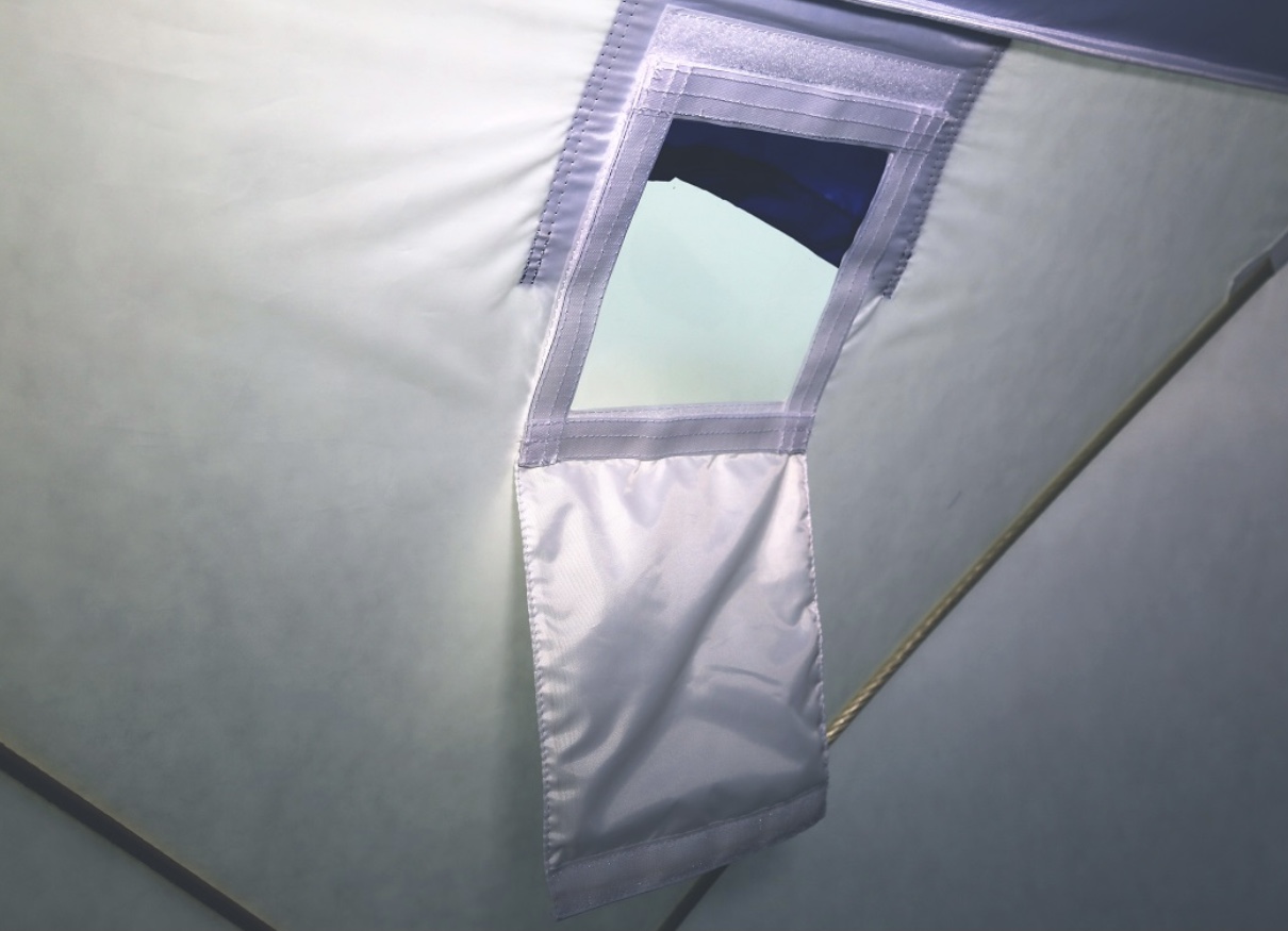 - Надежный трехслойный тент с воздушной прослойкой без дополнительной стежки и клея, что обеспечивает высокую сохранность тепла внутри палатки;