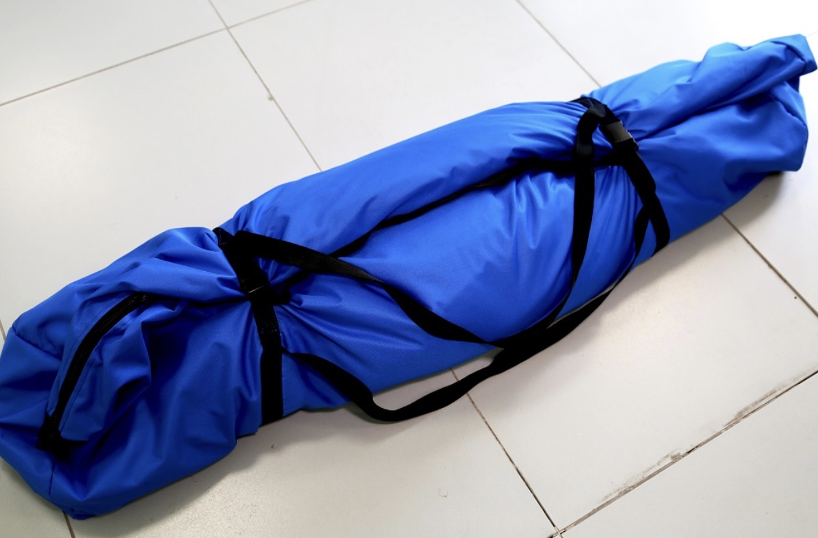 В комплект входит удобный и надежный чехол для транспортировки палатки, имеющий молнию и ремни-утяжки, позволяющие компактно сжать упакованную палатку.