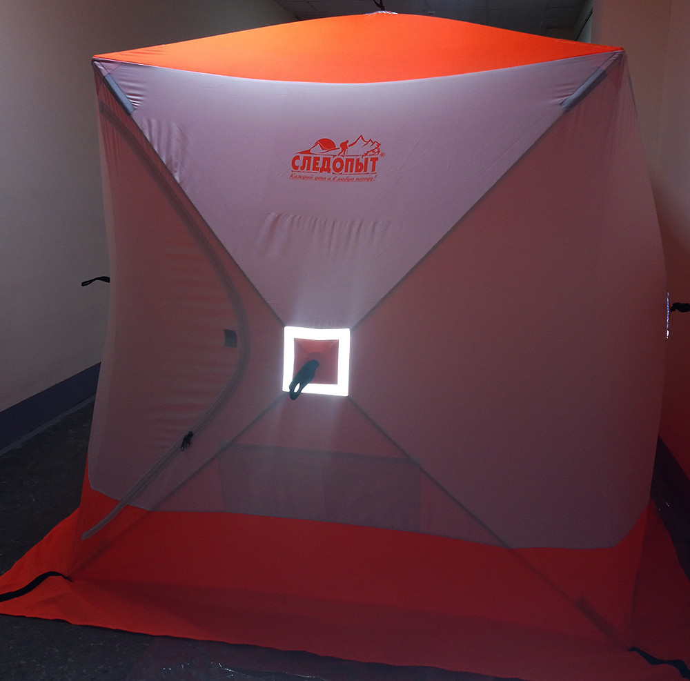 Зимняя палатка «Следопыт «Куб» обеспечивает комфорт для рыбалки в зимнее время года. Благодаря системе крепления дуг, «хабы» палатки очень быстро переводятся из транспортного положения в рабочее состояние. «Хаб» выполнен из морозостойкого, ударопрочного материала - нейлона (полиамида). Установить палатку можно в течение одной минуты даже одному человеку. Каркас изготовлен из прочного стеклопластикового гладкого прутка диаметром 10 мм. Данная конструкция обеспечивает легкое раскрытие, устойчивость палатки в собранном виде при порывистом ветре. Это позволяет увеличить износостойкость каркаса, даже без использования растяжек.