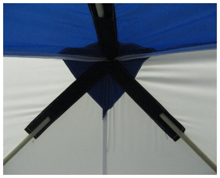 Палатка для зимней рыбалки выполнена из ткани Oxford 240D PU2000 (водостойкость 2000 мм), что обеспечивает долговечность, непродуваемость и водонепроницаемость конструкции. Для хорошего освещения внутреннего пространства в тент встроено три отстегивающихся окна, выполненных из прозрачного морозо- и износостойкого материала. В нижней части к тенту пришита внешняя юбка. Для создания комфортного микроклимата внутри закрытой палатки имеются два вытяжных клапана и один приточный для установки теплообменника.