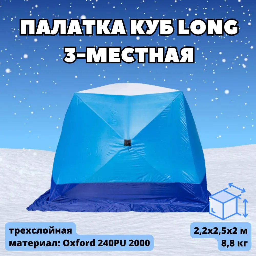 Палатка зимняя СТЭК КУБ 3 LONG трехслойная (2.2х2.5х2.0 м)