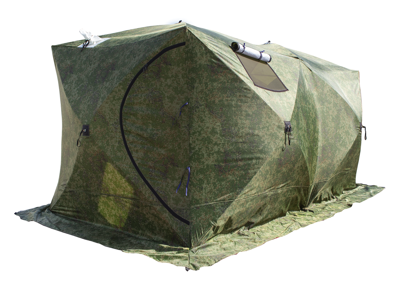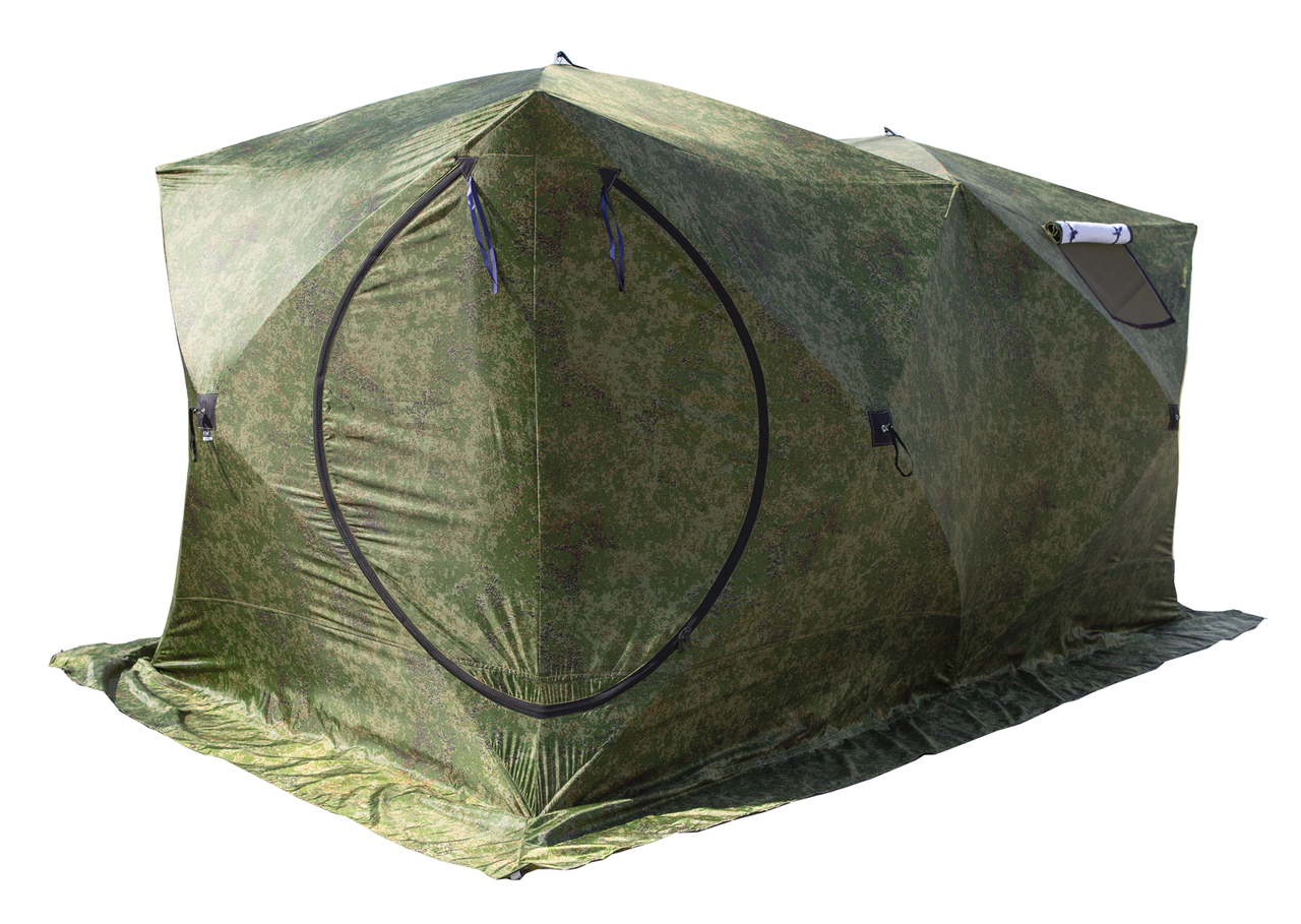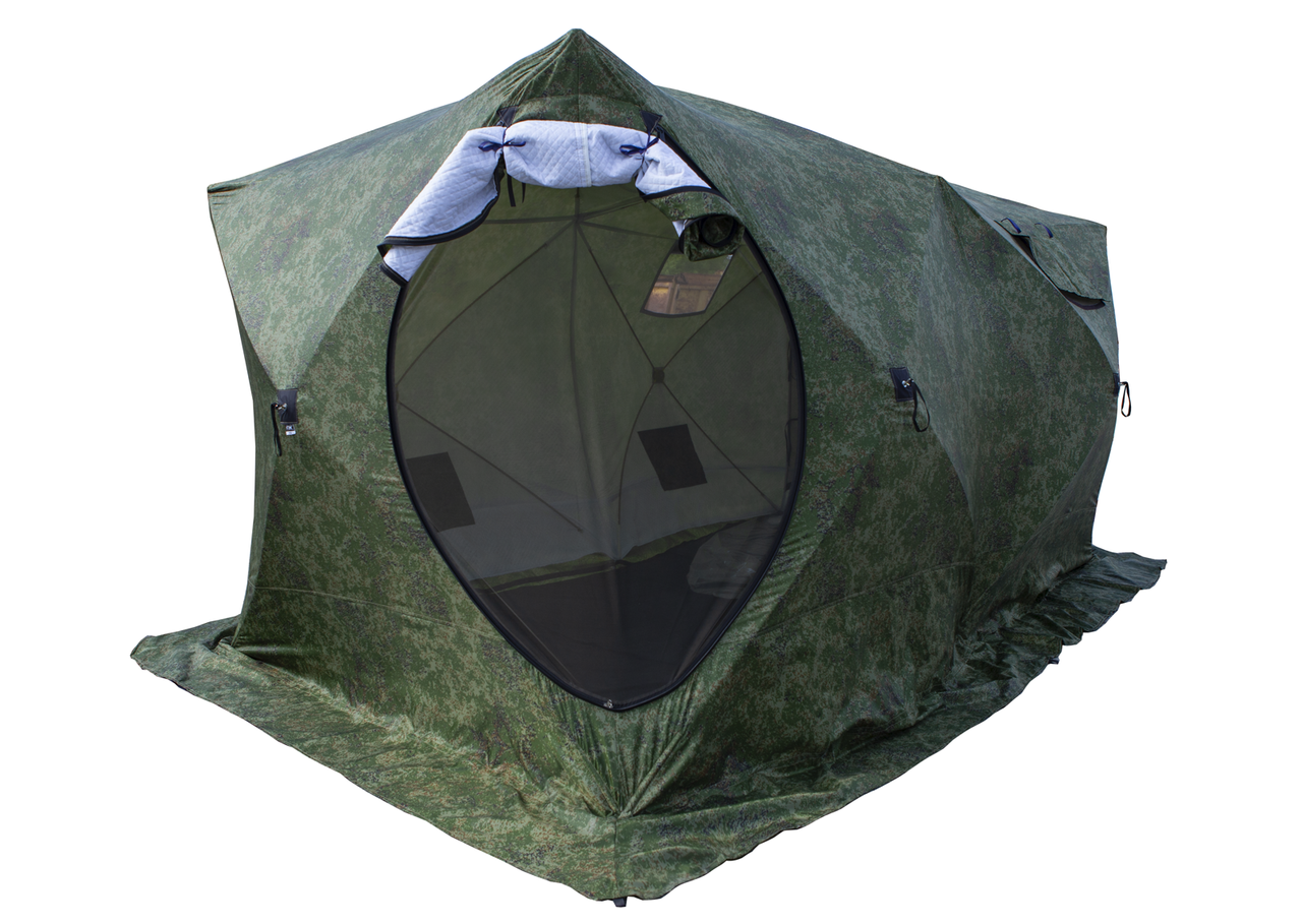 Палатка зимняя СТЭК КУБ 3 Т ДУБЛЬ трехслойная, дышащая (2.2х4.4х2.05 м) с отверстием для трубы.
