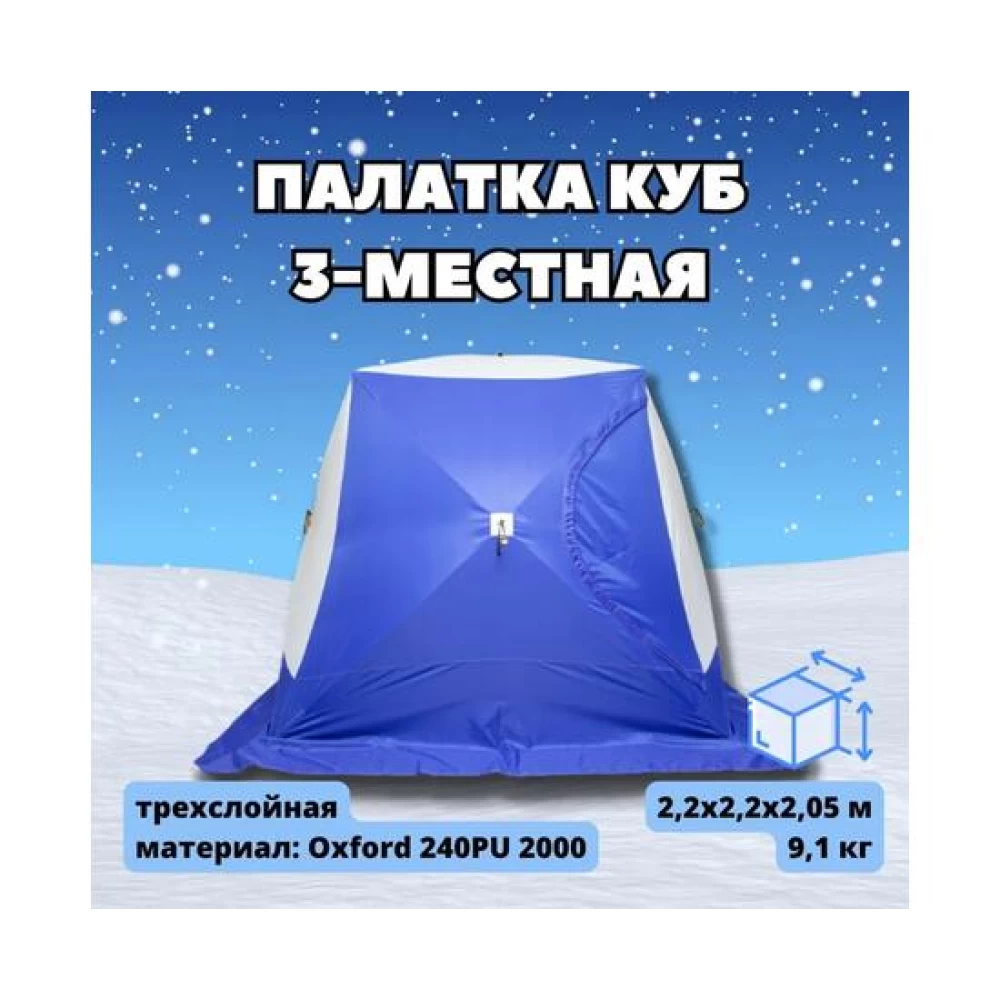 Палатка зимняя СТЭК КУБ 3 трехслойная, дышащая (2.2х2.2х2.05 м)