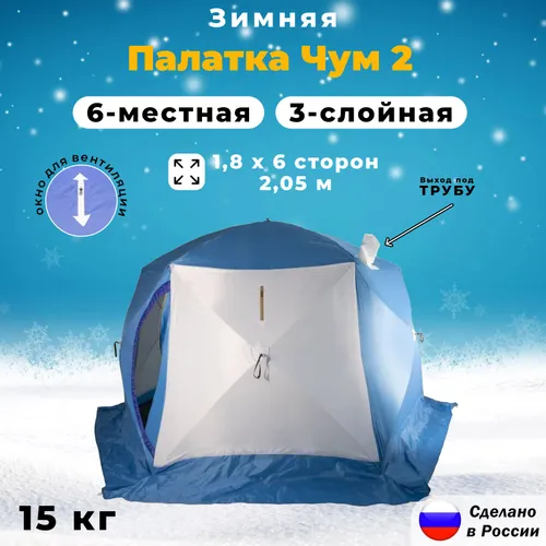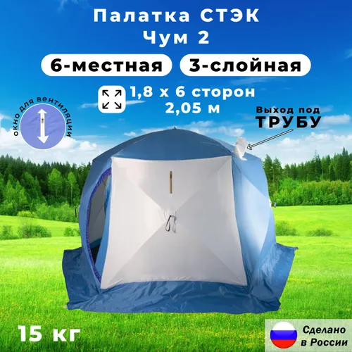 Палатка ЧУМ 2 от уральского производителя СТЭК– это идеальный выбор для зимней рыбалки. Она предназначена для комфортного отдыха четырех и более человек в самых сложных погодных условиях.