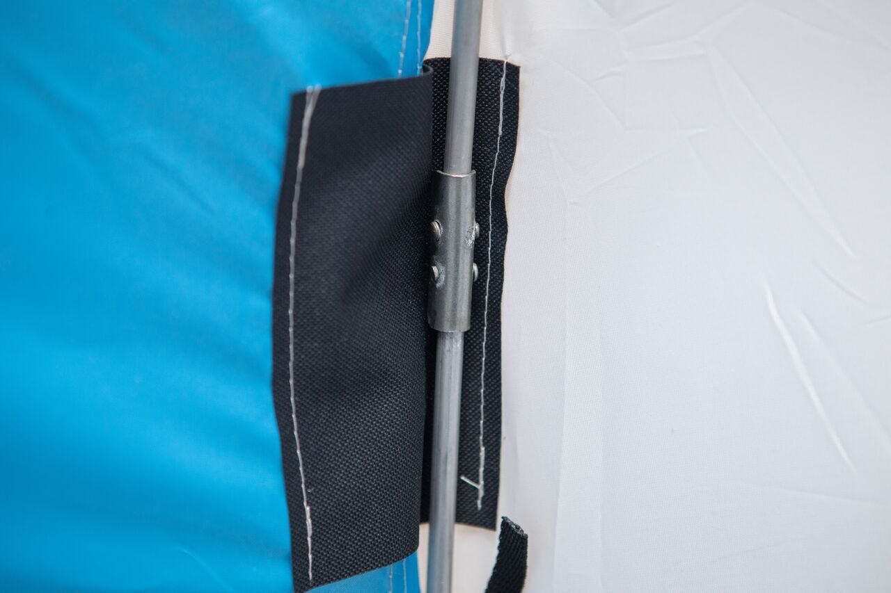 Изготовлена из высокопрочного алюминиево-дюралевого каркаса, алюминиевой комплектации и синтетической непродуваемой ткани (Оксфорд 210 PU).