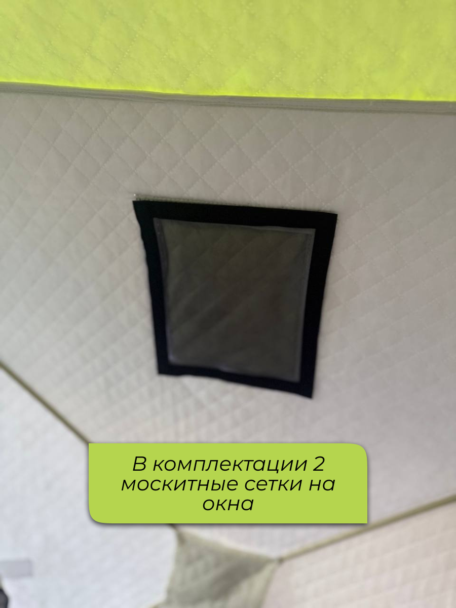 Палатка зимняя (без дна) предназначена для зимней рыбалки, позволяющая рыболову чувствовать себя максимально комфортно на зимней рыбалке в любых погодных условиях. В собранном виде палатка имеет форму куба с выпуклыми наружу стенками, что способствует увеличению внутреннего объема и позволяет рыболовам стоять в полный рост. Палатка имеет 2 выхода, что очень удобно, когда рыбачат 3-4 человека. Увеличенный размер входа позволит свободно заходить в палатку, даже с учетом вашей зимней одежды.