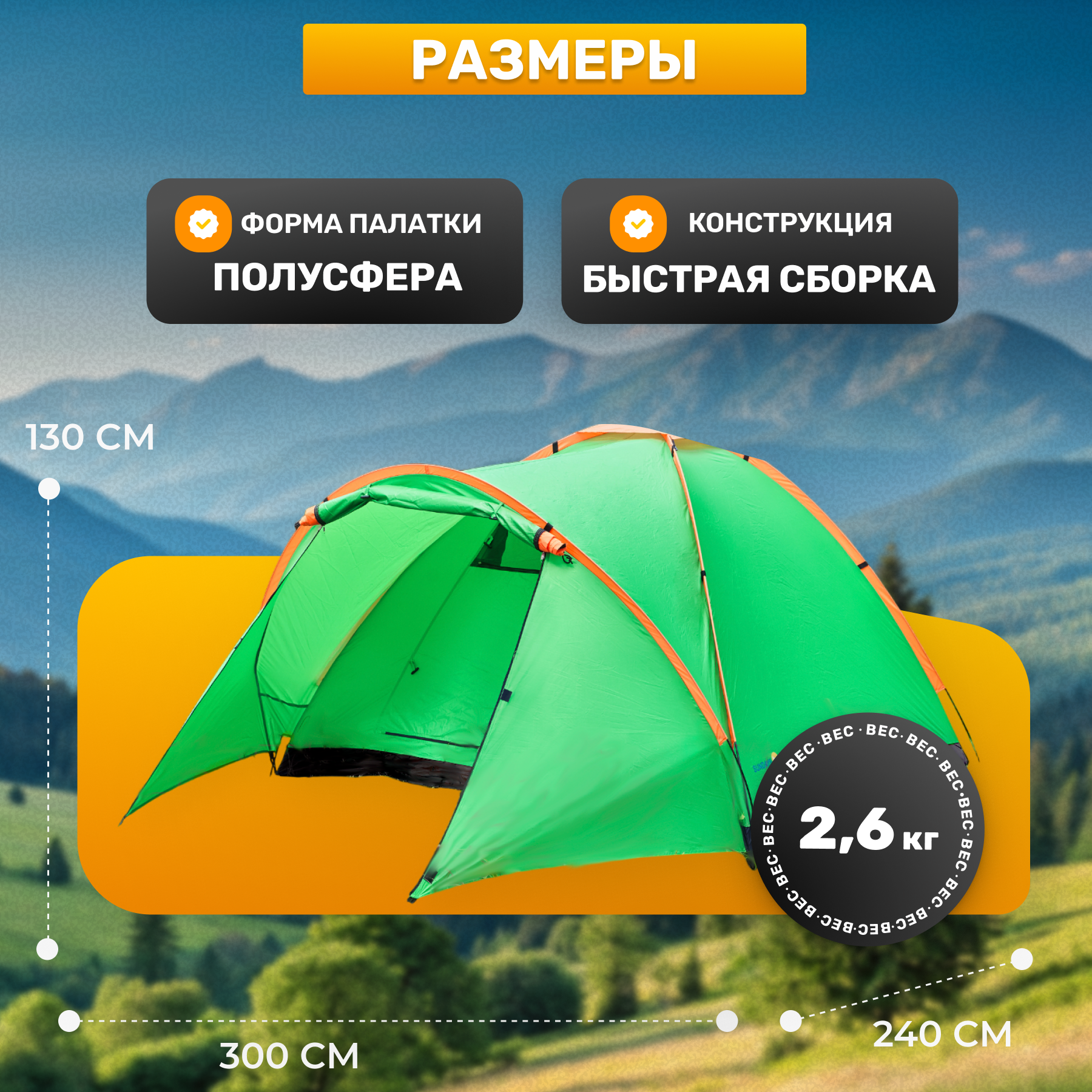 - Просторная: предоставляет достаточно места для 4-х человек за счет размеров 240×300 см и высотой 130 см, обеспечивая комфортное размещение.
