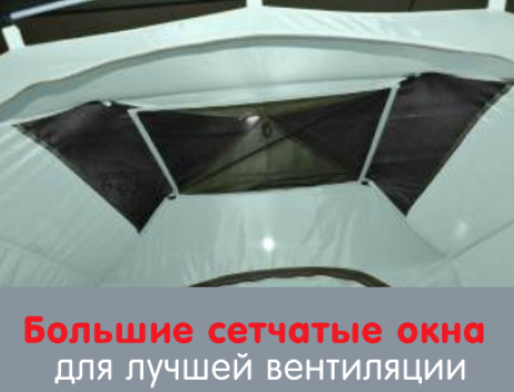 - Надежная конструкция: алюминиевые дуги диаметром 8,5 мм обеспечивают устойчивость палатки даже при сильном ветре.