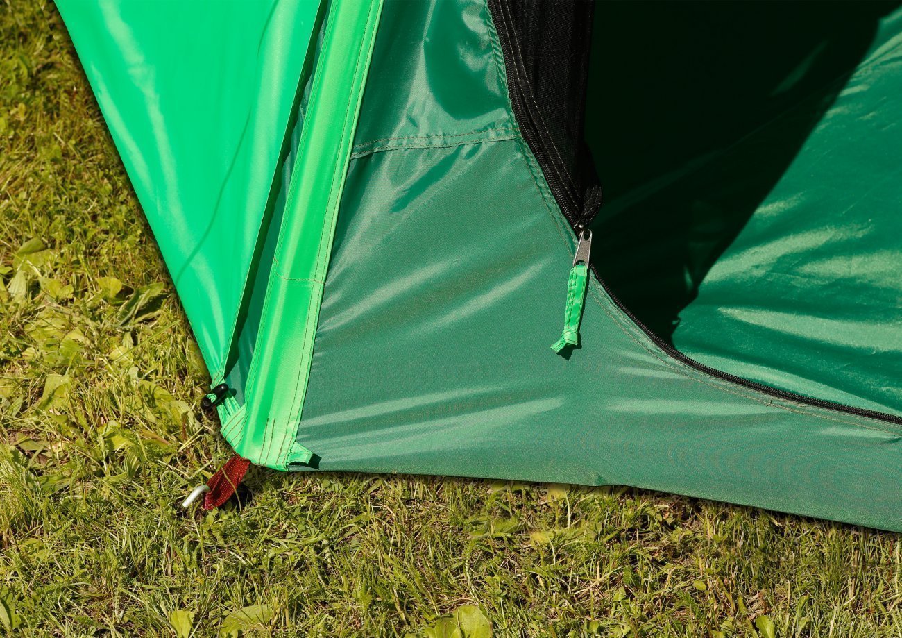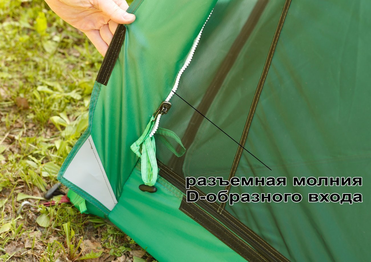 Два дверных проема, расположены на противоположных сторонах купола и могут раскрываться во всю ширину стенки, предоставляя хороший доступ внутрь палатки с разных сторон. Противоположно размещенные входы позволяют эффективно проветривать палатку при ее эксплуатации в комплекте с влагозащитным тентом.