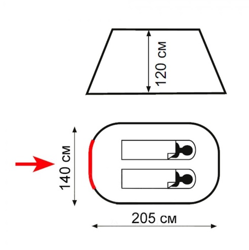 Вход на молнии дублируется москитной сеткой. Тамбура нет.