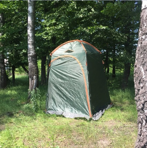 Палатка легко может заменить кабинку для переодевания. Вход открывается при помощи молнии с двумя бегунками. Специальная противопожарная пропитка предотвращает распространение огня при возгорании. Плотная ткань не боится солнечного света, в результате чего сохраняет свой первоначальный вид не один год. В комплект также входит сумка чехол с ручками для удобного хранения и переноса палатки.