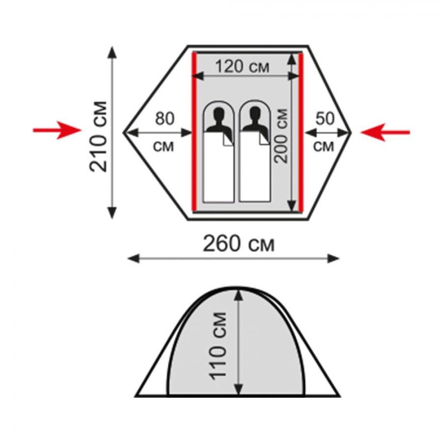 - Размер внутренней палатки ДхШхВ, см 200 х 120