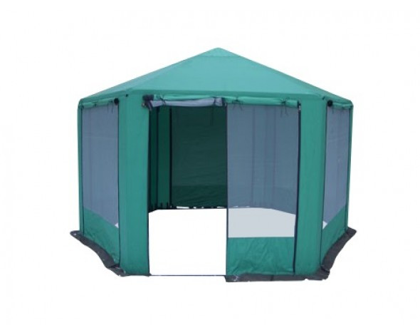 Шатер Митек «Пикник-шестигранник» зеленый - вместительный шатер имеет форму шестигранника и объем 10, 3 кв. м. Он предназначен для коллективного отдыха в природных условиях. Также шатер отлично может использоваться как летняя кухня.