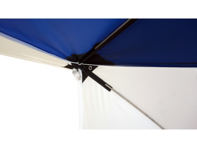 4. Открыть одну сторону, расстегнув молнии. Установить стойки.