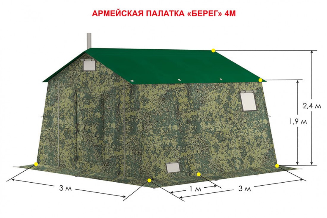 Купить армейскую палатку на 4 человека Берег 4М1 размером 3х3 метра — выбор эксперта при размещении в полевых условиях!