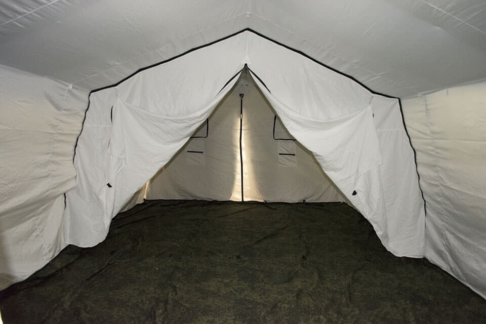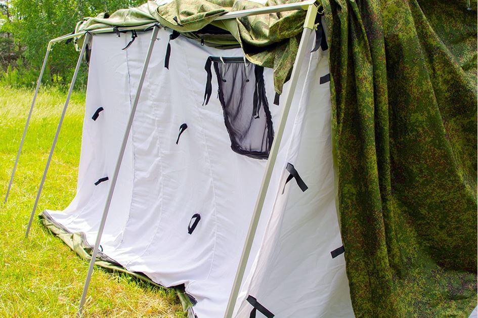 Палатка предназначена для всесезонного размещения людей в полевых условиях, организации медицинских пунктов, пунктов питания, штабов и т.д. в районах с температурой окружающей среды от - 40°С до + 50°С.