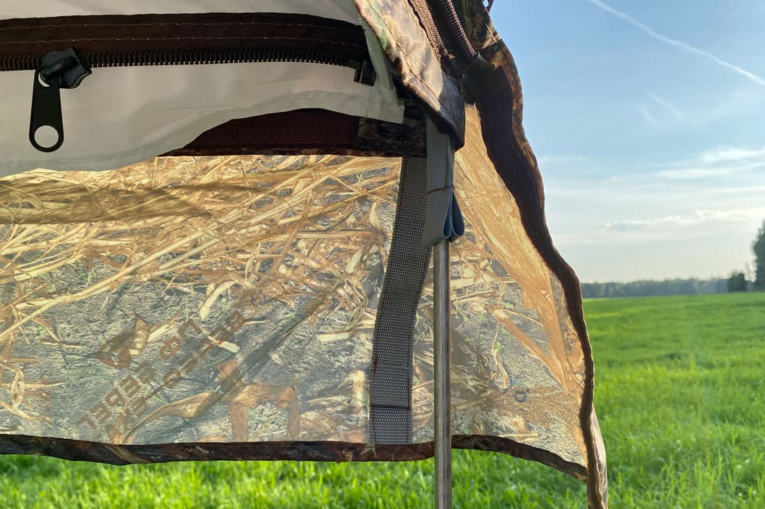 Передняя часть веранды оснащена молниями и может быть поднята, также в ней есть молния, выполняющая роль входа. Веранда состоит из 3 отдельных москитных стенок, которые могут быть пристегнуты раздельно и монолитной конструкцией. Между собой они скрепляются молнией.