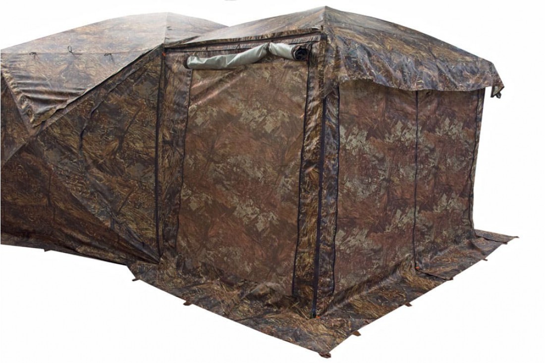 Установка москитной веранды на откидную стенку палаток Куб