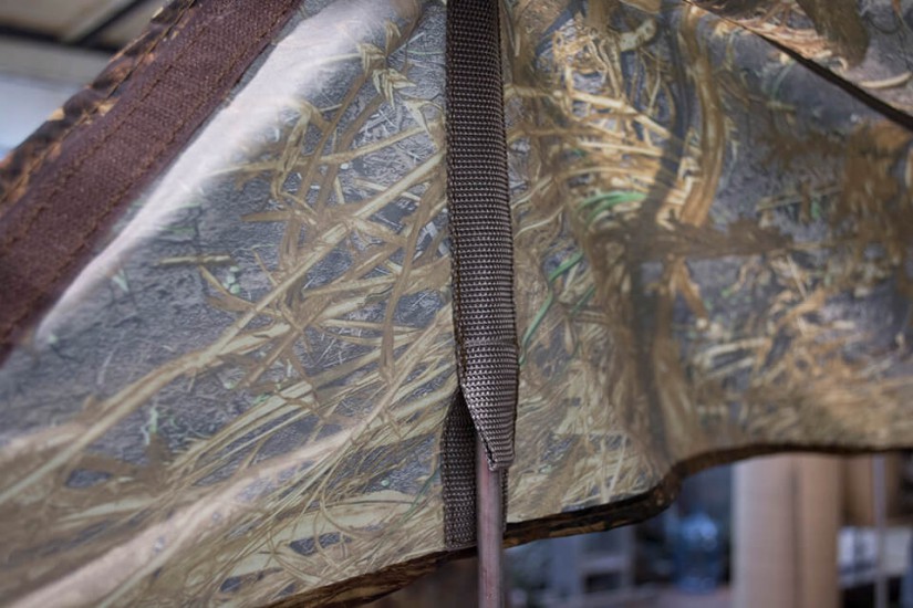 Надежный каркас из прутка 10 мм. сплава В95Т1 и система оттяжек палатки Куб 3.6 обеспечивают хорошую ветроустойчивость.