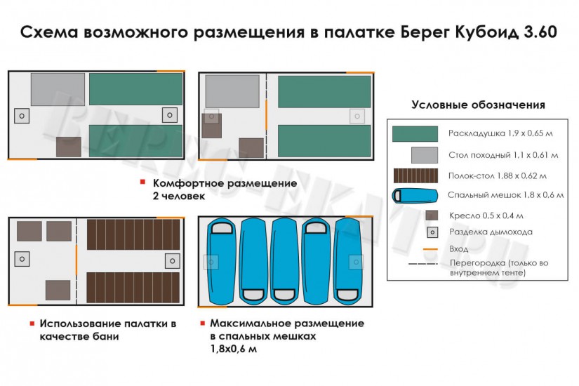 Оснащение палатки Куб 3.60 «Берег»: