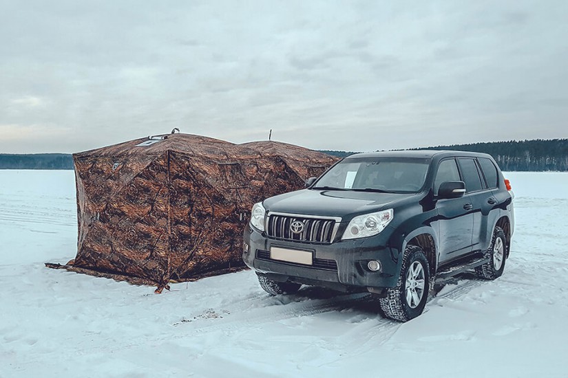 - Эффективная полезная площадь. Взрослый человек в такой палатке может стоять в полный рост. Благодаря такой конструкции Куб 3.6 удобно использовать во время зимней рыбалки или в качестве палатки-бани для компании из 3-4 человек;