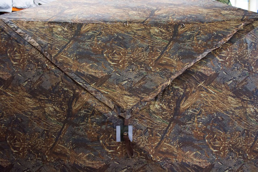 Утепленный пол в палатку «Пентагон» состоит из трех слоев: фольгированный изолон (утеплитель) покрытый с двух сторон прочной влагостойкой тканью Оксфорд 300 PU 4000 мм.