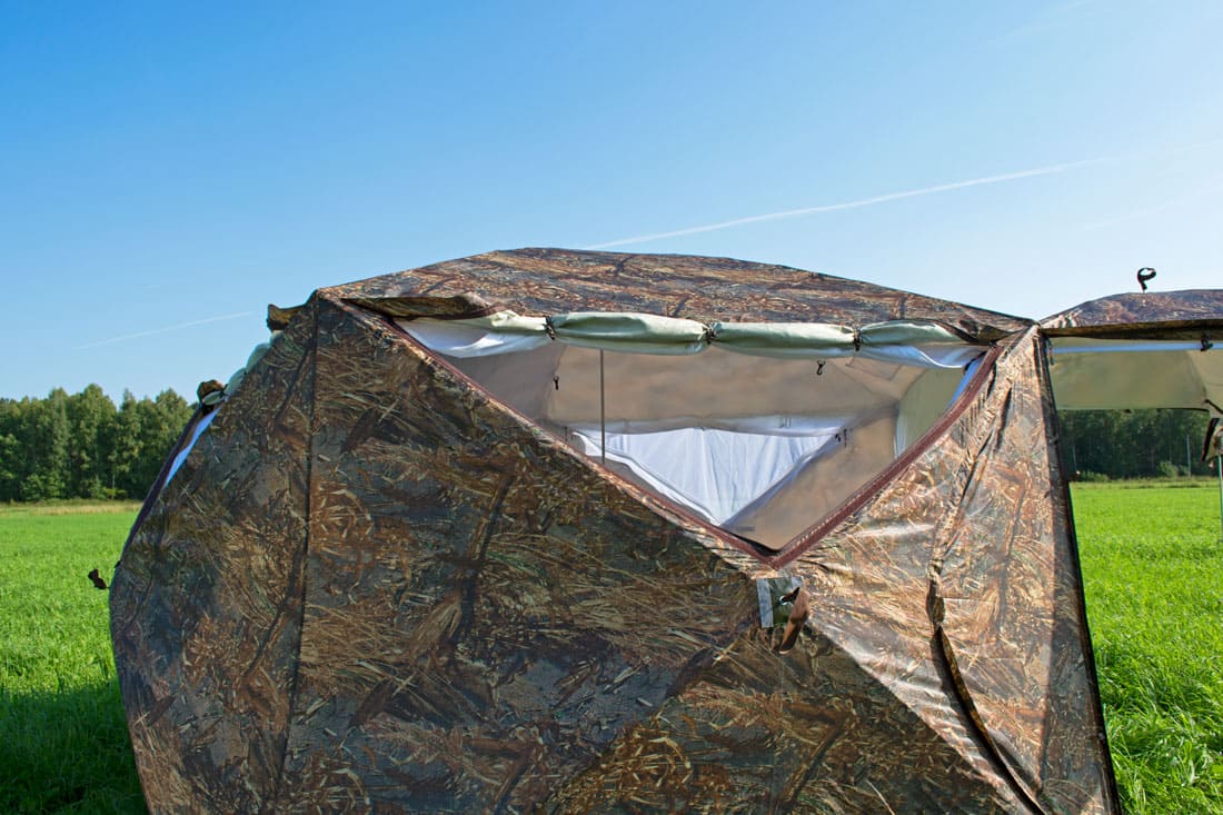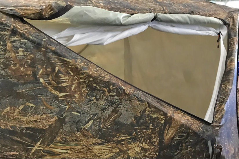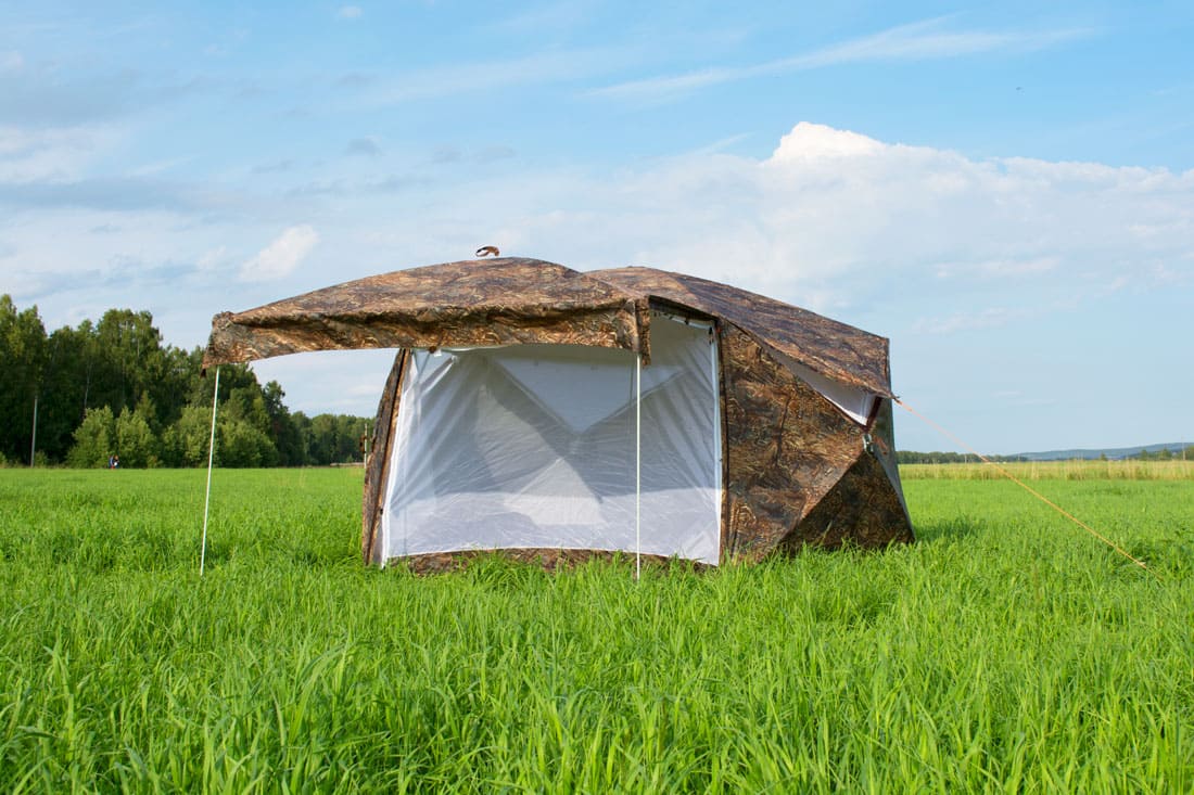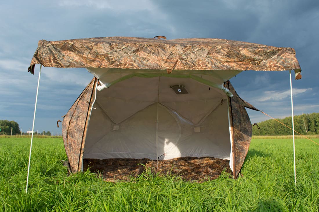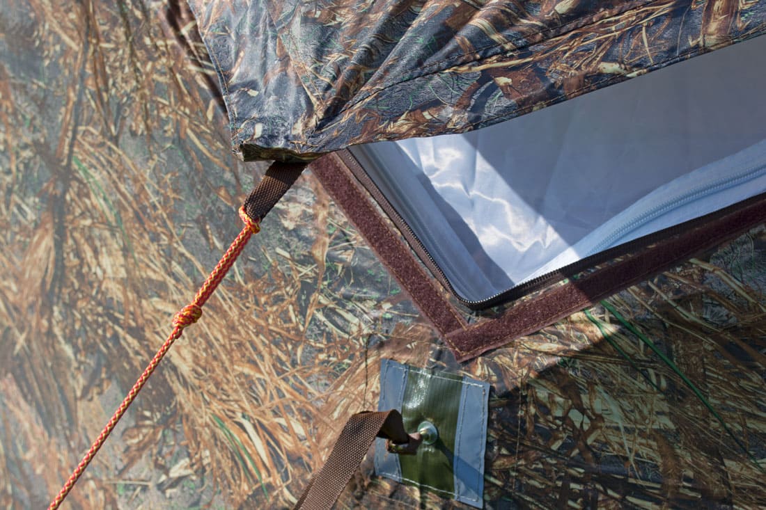 Вход в палатку продублирован 3 слоями: внешний тент, москитная сетка, внутренний тент. Благодаря этому в палатке будет комфортно как летом, так и зимой.
