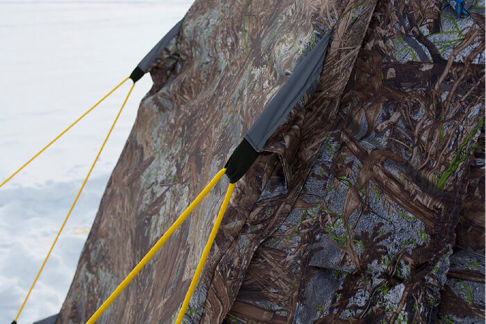 На внешнем тенте размещены оттяжные петли с кармашками, выполненные с использованием светоотражающих элементов для закрепления палатки на местности при помощи оттяжной веревки. Для защиты от сквозняков и осадков в нижней части палатки расположена юбка с петлями для крепления кольев.