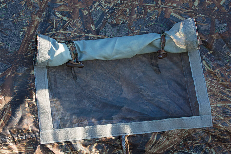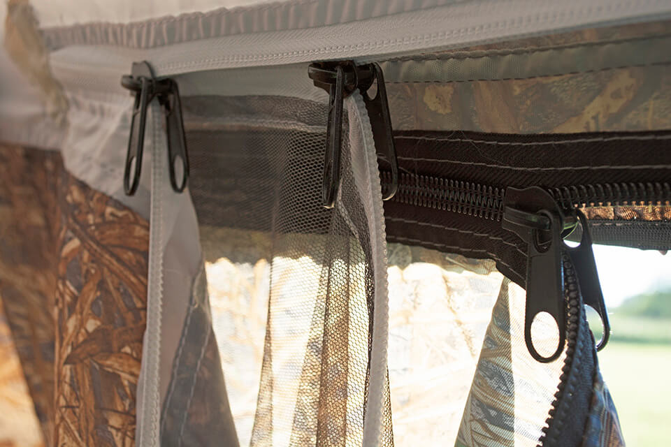 В комплектацию УП-7 входят многофункциональные окна, состоящие из: защитного клапана на внешнем тенте, оконного заполнения из морозостойкой силиконовой пленки (выдерживает до – 50 °С), внешнего тента, москитной сетки и внутреннего тента.