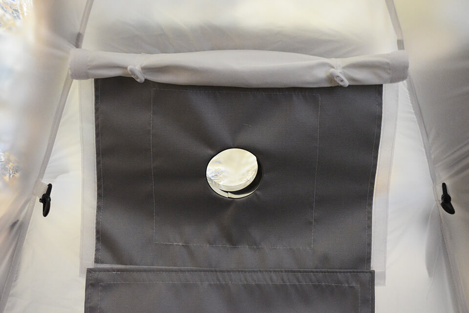 Внешний тент изготавливается из влагостойкой морозостойкой ткани Оксфорд 300 PU 4000. Соединяется с каркасом липами из морозостойкого ПВХ, размещенными в местах сгибов и предотвращающими складывание дуг и повреждение палатки.