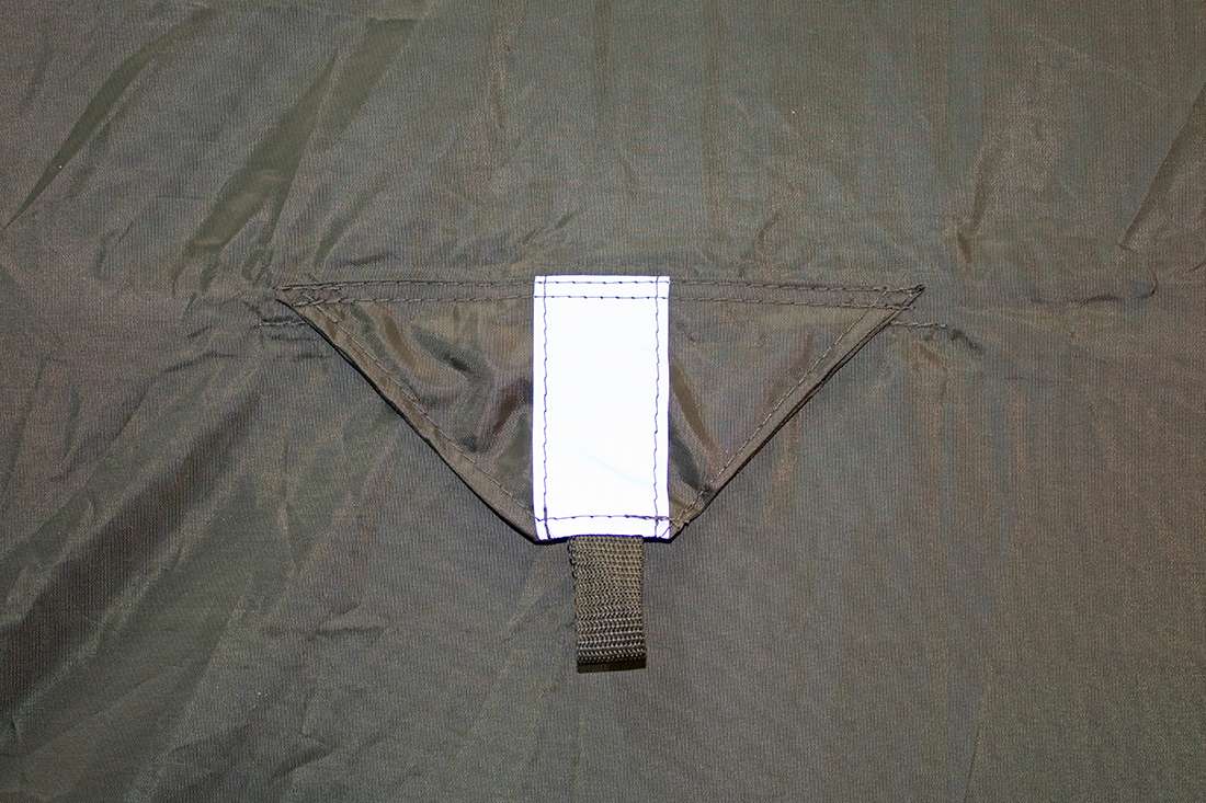 Оттяжные петли-карманы внешнего тента палатки МФП-4 выполнены с применением светоотражающих элементов, которые являются вспомогательным элементом безопасности в темное время суток.