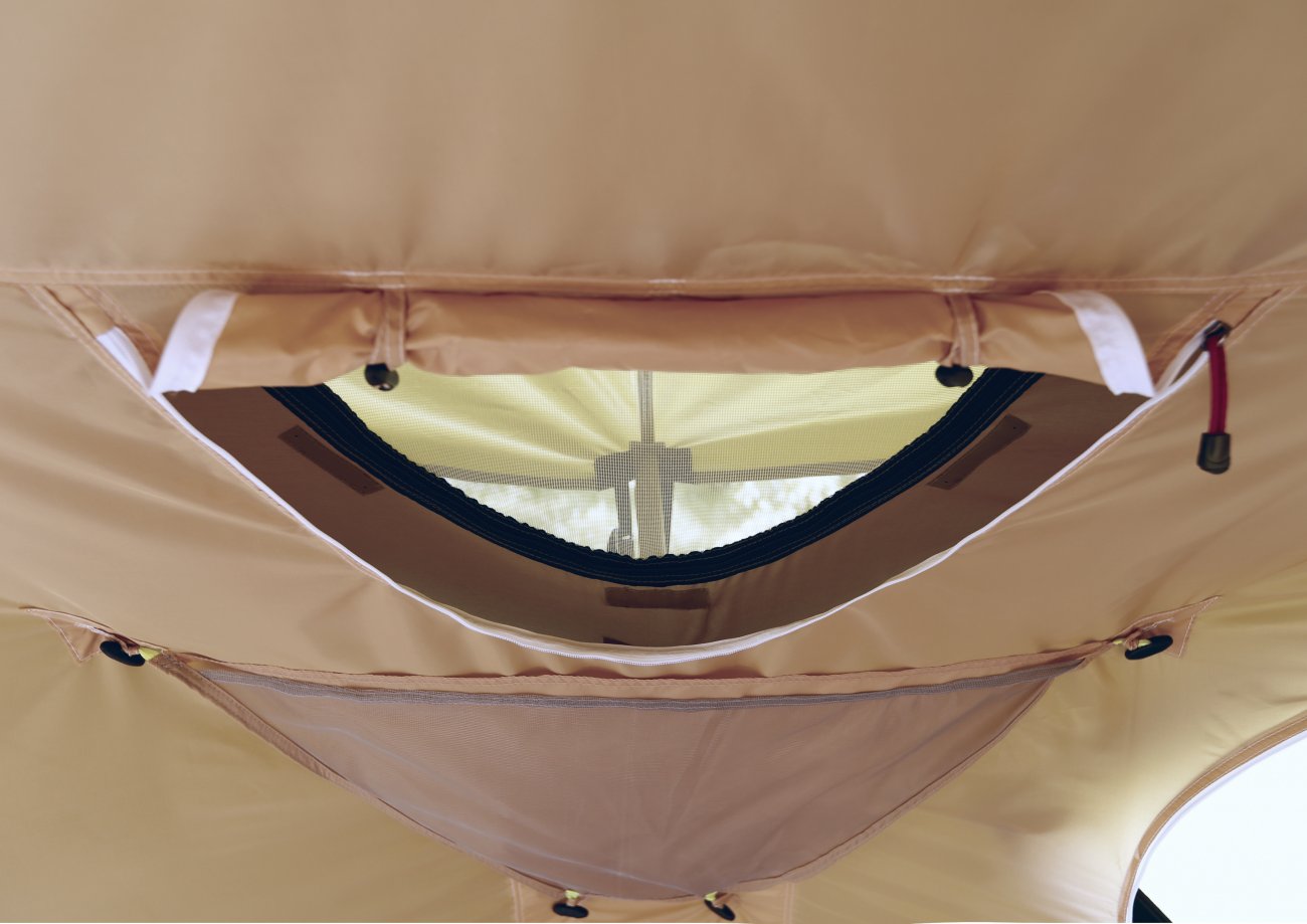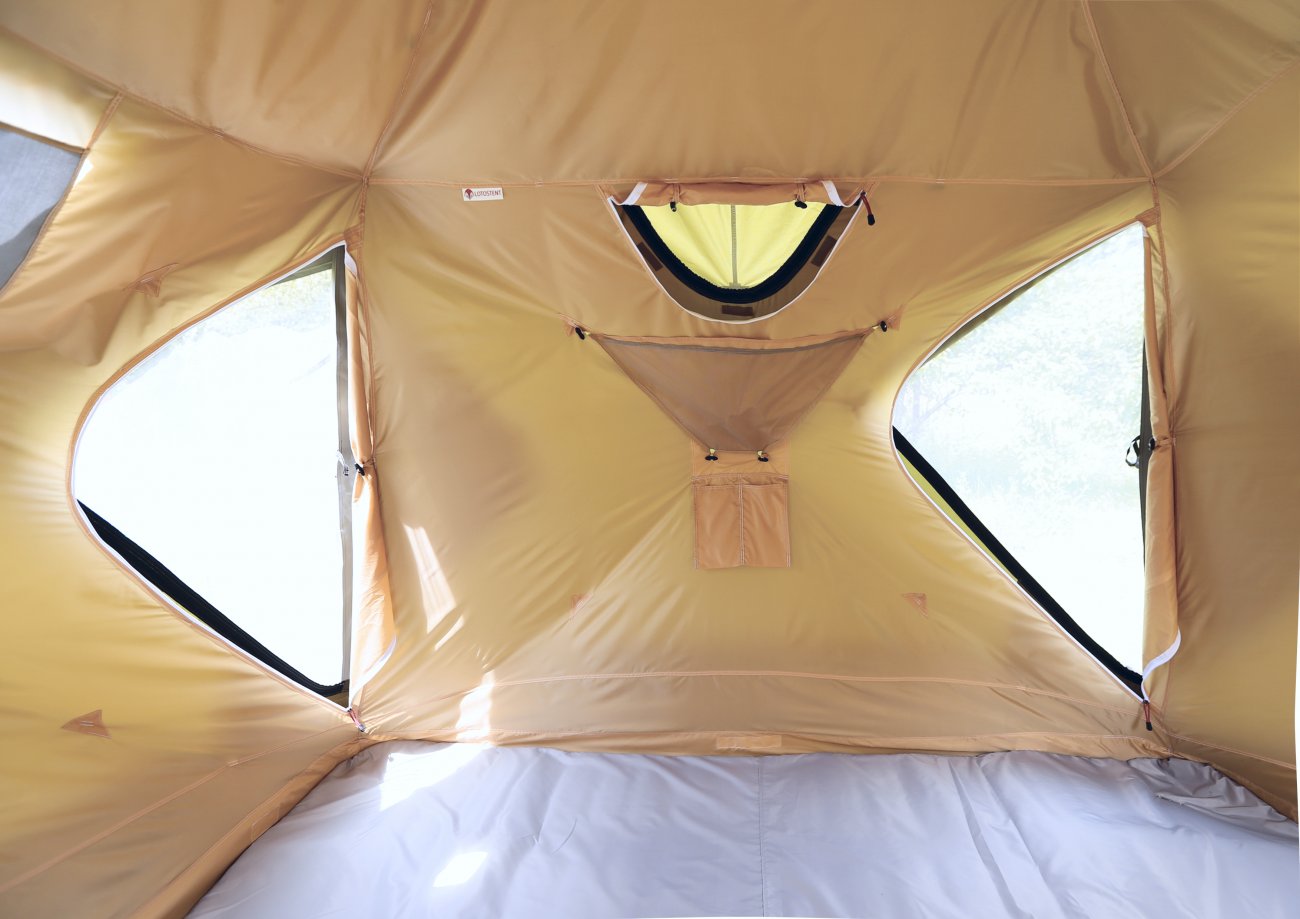 В потолке тента встроен люк для доступа к механизму раскрытия палатки. Люк открывается двумя встречными молниями. На трех стенках расположены кармашки для мелких предметов и съемные органайзеры для крупных предметов (в базовой комплектации установлен только один органайзер)