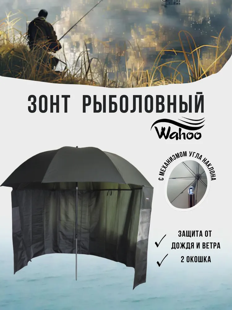 Рыболовный зонт WAHOO – это надежная защита от ветра, дождя и изнывающего солнца, чтобы рыбалка была комфортной и в радость. Зонт имеет наклон 45 и 90 градусов, что позволяет устанавливать его, как удобно, не отвлекаясь от любимого хобби. Зонт легко брать с собой, в комплекте предусмотрена тканевая сумка для переноски, будь то песчаный пляж, скалистая местность или пологий берег. Установка зонта тоже довольно – таки проста и не занимает много времени. Диапазон охвата территории достаточно велик, что позволяет находиться в комфорте на протяжении всей рыбалки. Зонт, со стальным стержнем 220 см - 22/19 мм – 8 стальных ребер (3.5 мм), ткань Оксфорд 210D (швы не проклеены) – это приобретение, которое прослужит вам немалый срок и оставит за собой лучшие впечатление о рыбалке.