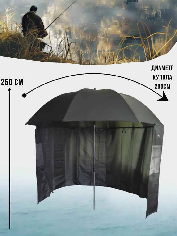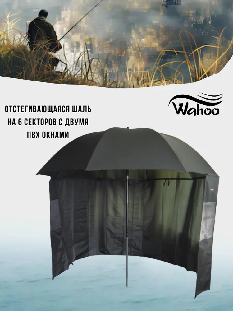Рыболовный зонт WAHOO с шалью на 6 секторов с двумя окошками (спица 3.8мм)