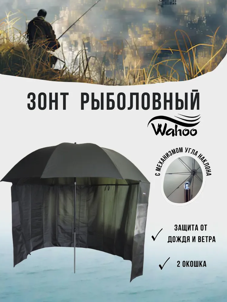 Рыболовный зонт WAHOO – это надежная защита от ветра, дождя и изнывающего солнца, чтобы рыбалка была комфортной и в радость. Зонт имеет наклон 45 и 90 градусов, что позволяет устанавливать его, как удобно, не отвлекаясь от любимого хобби. Зонт легко брать с собой, в комплекте предусмотрена тканевая сумка для переноски, будь то песчаный пляж, скалистая местность или пологий берег. Установка зонта тоже довольно – таки проста и не занимает много времени. Диапазон охвата территории достаточно велик, что позволяет находиться в комфорте на протяжении всей рыбалки. Зонт, со стальным стержнем 250 см - 22/19 мм – 8 стальных ребер (3.8 мм), ткань Оксфорд 210D (швы не проклеены) – это приобретение, которое прослужит вам немалый срок и оставит за собой лучшие впечатление о рыбалке.