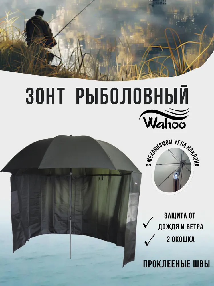 Рыболовный зонт WAHOO с шалью на 6 секторов с двумя окошками (спица 4.2мм)