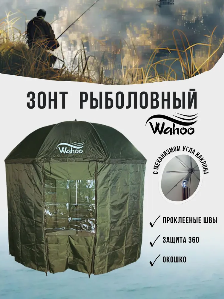 Рыболовный зонт WAHOO с шалью на 8 секторов с одним окошком (спица 4.2мм)