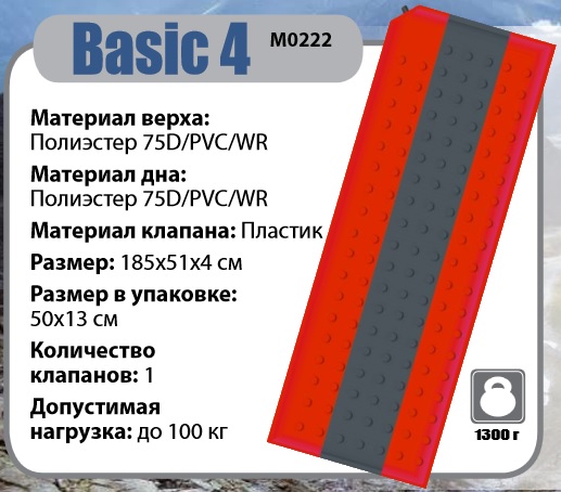 Ковер самонадувающийся BTrace Basic 4 (183х51х3,8 см) - надежный самонадувающийся коврик толщиной 3.8 см, отлично подойдёт туристам для комфортных путешествий и походов.