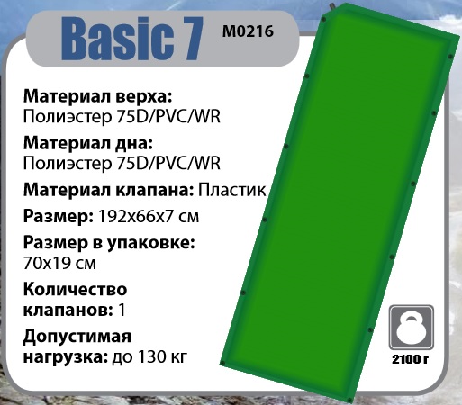 Самонадувающийся коврик BTrace Basic 7Комфортный коврик для путешествий серии Basic увеличенного размера. За счёт толщины 7 см коврик создаст комфорт на любой поверхности, защитит от неровностей и холодной земли. Специальная ячеистая конструкция наполнителя позволяет удержать вес и объём коврика в минимальных значениях, при этом обеспечивая комфортный сон. За счёт внутреннего материала коврик достаточно развернуть, чтоб он сам наполнился воздухом, потребовав лишь небольшой подкачки в конце. Коврики можно состёгивать. В комплект входят ремнабор и удобный чехол для хранения и переноски.