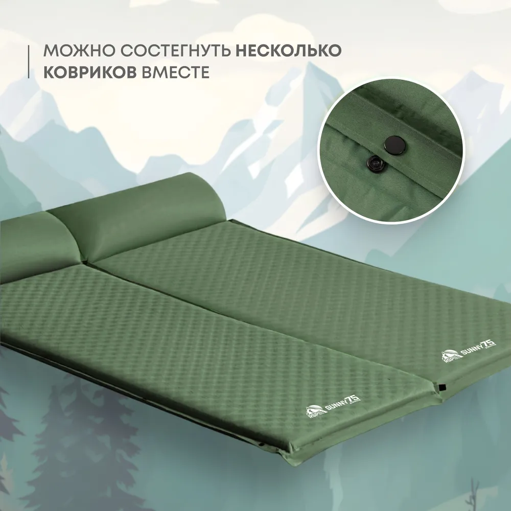 Обновленный в 2024 году самонадувающийся коврик SUNNY 50 от компании RSP – отличный выбор для туризма и кемпинга. За счет своей толщины в целых 50 мм, встроенной надувной подушки, а также высоких показателей теплоизоляции он способен обеспечить вам комфортный сон в любое время года. Коврик имеет прямоугольную форму и увеличенные размеры: длина – 200 см, а ширина – 66 см. (размеры надуваемой части: коврик 165*60 см. + подушка 30*60 см.) Но при этом его размер в сложенном виде всего 67*16 см., что сопоставимо с размерами обычного туристического коврика-пенки толщиной 1,2 см. SUNNY 50 имеет вес всего 1,75 кг, а допустимая нагрузка составляет 130 кг. Особого внимания достойна надувная подушка, она имеет размеры 60*30 см, а высота ее составляет 15 см.