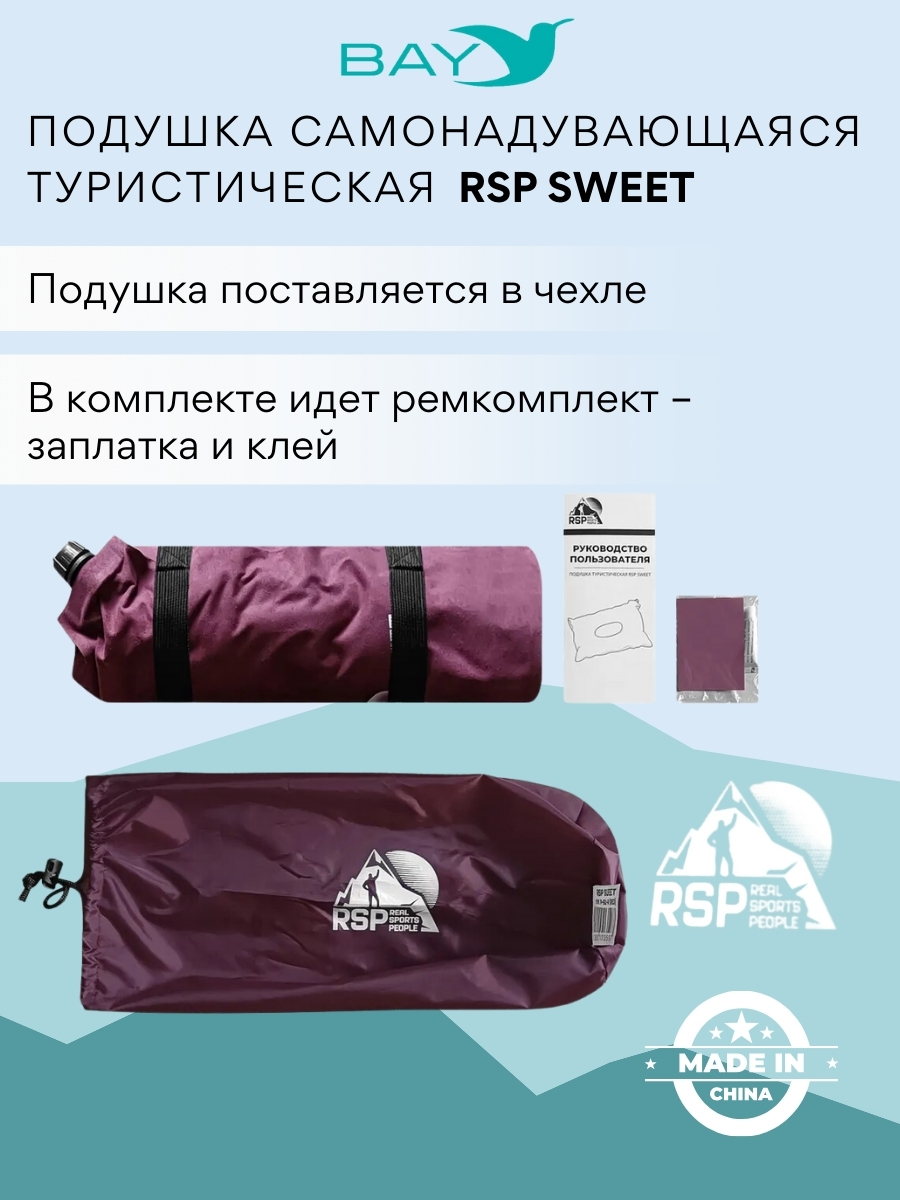 Самонадувающаяся подушка Sweet от бренда RSP – это превосходный аксессуар для сна в походных условиях. Благодаря небольшому весу и компактным размерам в сложенном состоянии, она идеально подходит для кемпинга, пеших и вело/мотопоходов, а также для путешествий на автомобиле, автобусе или самолете.