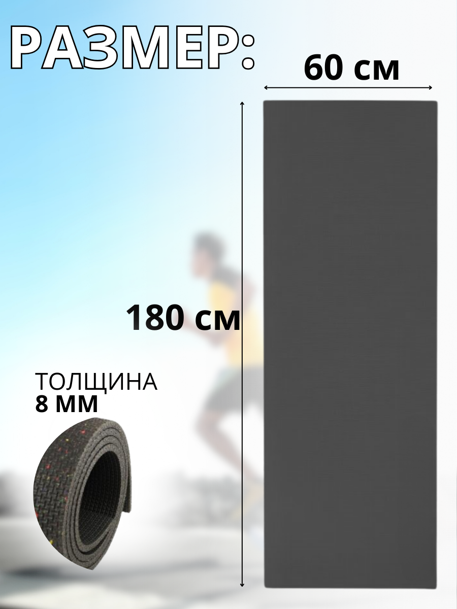 Длина 180 см. Ширина 60 см. Толщина 8 мм.