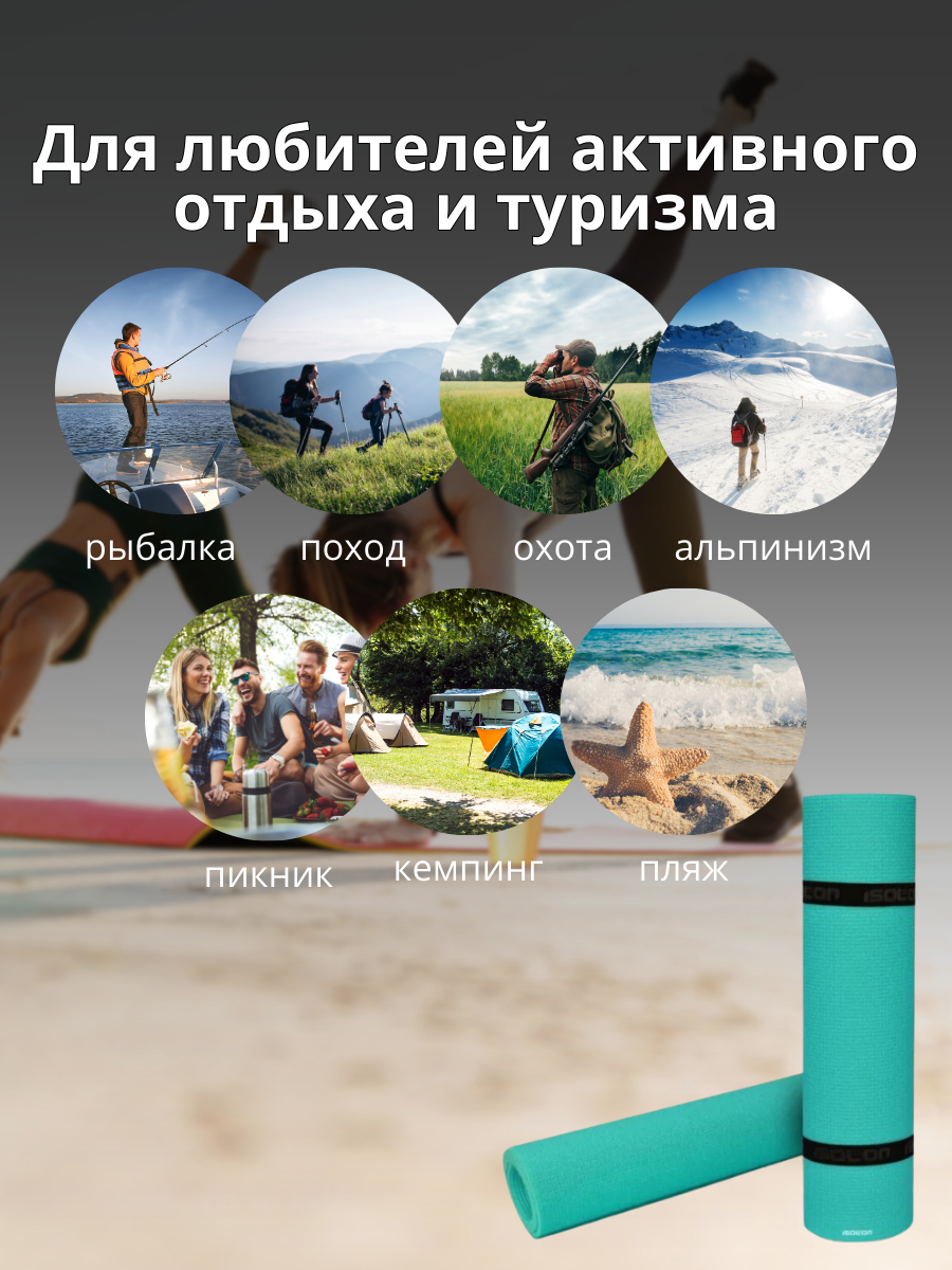Изготовлен из сшитого пенополиэтилена ISOLON 300, экологичного материала, безопасного для контактов с кожей человека.