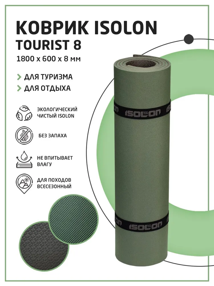 Коврик туристический ISOLON Tourist 8 1800х600х8 серый/хаки